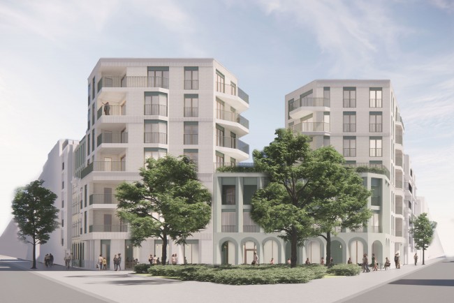 Vanaf de eerste verdieping bevinden zich de appartementen. In totaal biedt het project ruimte aan 36 appartementen, telkens inclusief privatief terras. De drie appartementen gelokaliseerd rondom het verlaagde volume op de derde verdieping kunnen naast hun privatief terras ook gebruik maken van de collectieve daktuin. De groene patio op de eerste verdieping is voor elk appartement toegankelijk.